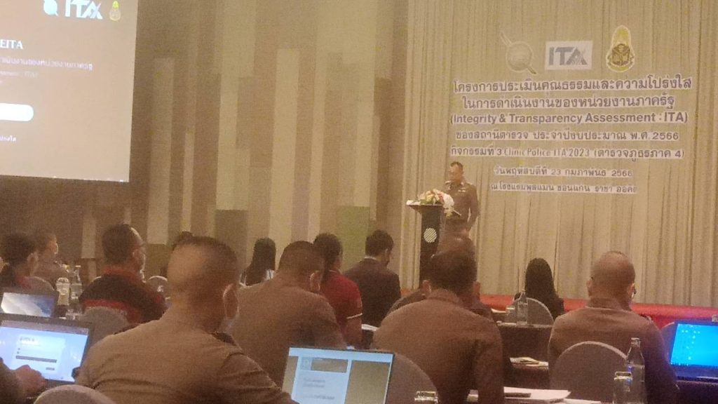 การประเมินยุทธศาสตร์และความโปร่งใสฯ ของหน่วยงานภาครัฐ 23 กุมภาพันธ์ 2023 โดย admin / ข่าวประชาสัมพันธ์ วันที่ 23 ก.พ.2566 เวลา 09.00 น. โดยการอำนวยการสั่งการของ พ.ต.อ.ประเสริฐ ธรรมชัย ผกก.สภ.ท่าบ่อ สั่งการให้ ร.ต.อ.วิทยา เนตรวงษ์ รอง สว.(สส.)สภ.ท่าบ่อ ปฏิบัติหน้าที่เจ้าหน้าที่เทคโนโลยีสารสนเทศ/Admin ITA สถานีตำรวจ เข้ารับการอบรม/การฝึกการประเมินยุทธศาสตร์และความโปร่งใสในการดำเนินงานของหน่วยงานภาครัฐ : ITA กิจกรรม Clinic Police ITA 2023 ประจำปีงบประมาณ 2566 ของ สถานีตำรวจ ณ โรงแรมพูลแมน ขอนแก่น ราชา ออคิด อำเภอเมืองขอนแก่น จังหวัดขอนแก่น