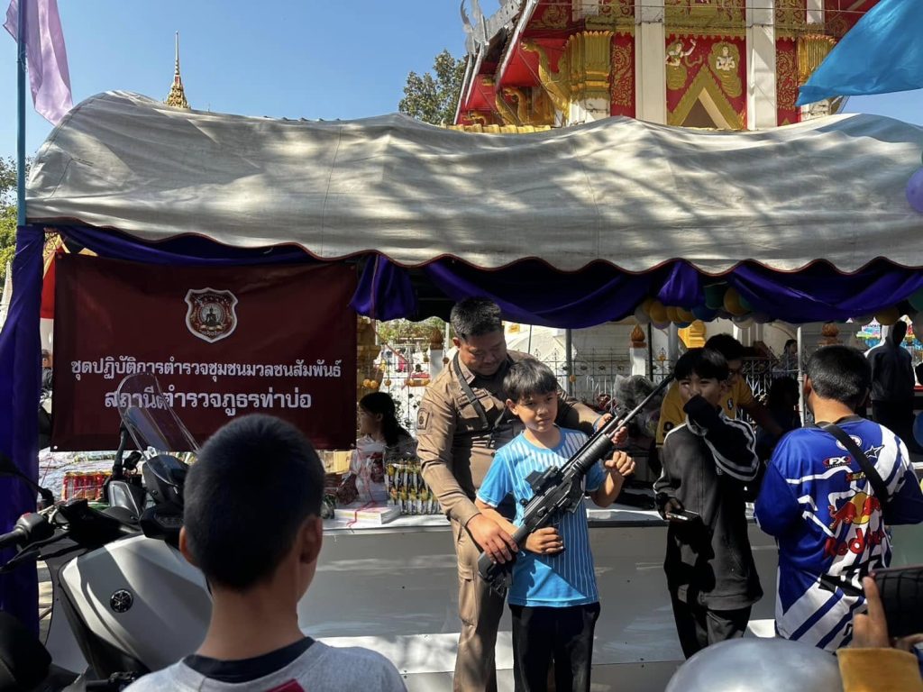 กิจกรรมจิตอาสา “วันเด็กแห่งชาติ 11 ม.ค.68” 11 มกราคม 2025 โดย admin / ข่าวประชาสัมพันธ์ วันที่ 11 ม.ค. 68 กิจกรรมจิตอาสา “วันเด็กแห่งชาติ” พ.ต.อ.ประเสริฐ ธรรมชัย ผกก.สภ.ท่าบ่อ พร้อมด้วยข้าราชการตำรวจจิตอาสา ร่วมกิจกรรมจิตอาสา ชุมชนสัมพันธ์แสดงนิทรรศการอาวุธยุทโธปกรณ์ที่ใช้ในการปฏิบัติหน้าที่ของตำรวจ และแจกสิ่งของขนม ให้แก่เด็กและเยาวชน ในวันเด็กแห่งชาติ ประจำปี 2568 ณ ลานอเนกประสงค์ วัดเทพมงคล ม.8 ต.โพนสา อ.ท่าบ่อ จว.หนองคาย