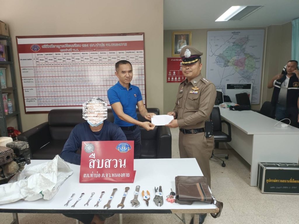 ►พฤติการณ์คือ เมื่อวันที่ 5 ก.พ.2566 ได้รับแจ้งจากผู้ใหญ่บ้านหมู่ 4 บ้านป่าสัก ว่ามีเหตุลักเครื่องสูบน้ำของชาวบ้านที่บ้านป่าสัก หมู่ 4 ต.กองนาง อ.ท่าบ่อ จว.หนองคาย อยู่เป็นประจำ และได้พบเห็นผู้ต้องสงสัยมาอยู่บริเวณที่เกิดเหตุจึงได้ ร่วมกับผู้ใหญ่บ้านทำการจับกุมตัว ทราบชื่อภายหลังผู้ถูกจับคือ นายเริงชัย ฯ