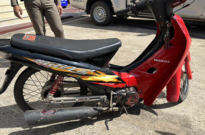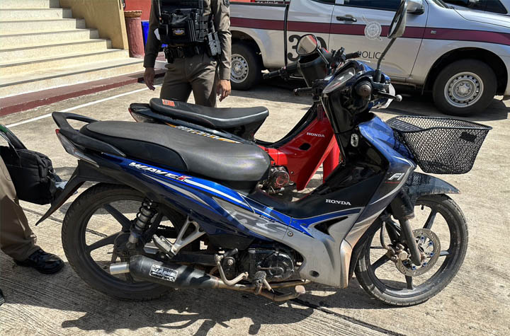 1. รถจักรยานยนต์ ยี่ห้อ ฮอนด้า เวฟ สีน้ำเงิน ไม่ติดแผ่นป้ายทะเบียน