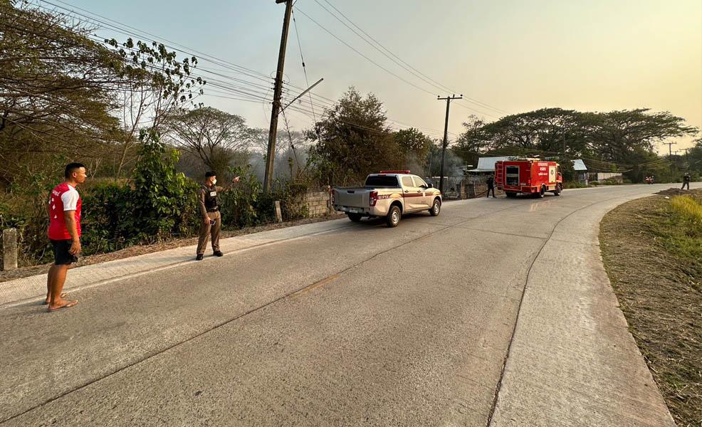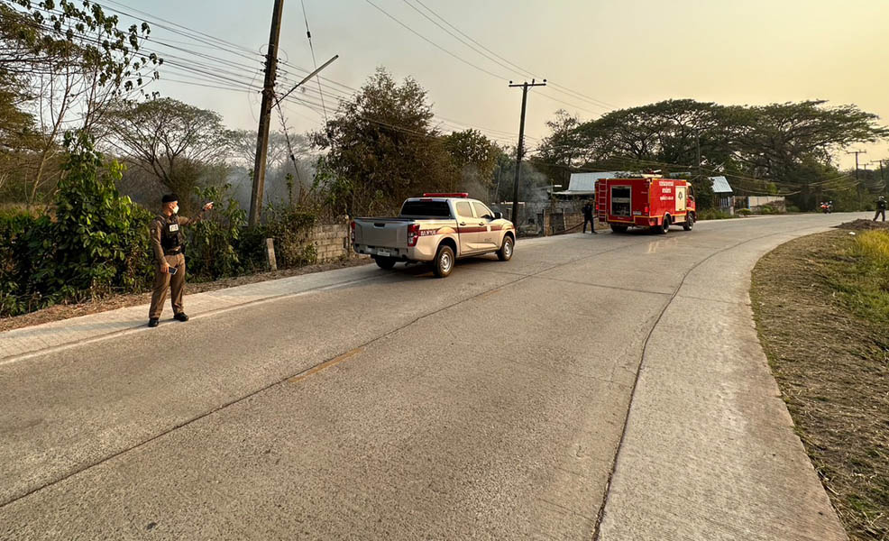 ว.4 ร่วมดับเพลิงเทศบาลเมืองท่าบ่อ เหตุเพลิงไหม้ ถนนห้าธันวา ม.6 ต.ท่าบ่อ ชุดสายตรวจเปิดสัญญาณไฟวับวาบป้องกันการเกิดอุบัติเหตุซ้ำซ้อน
