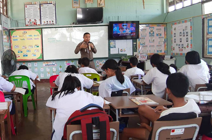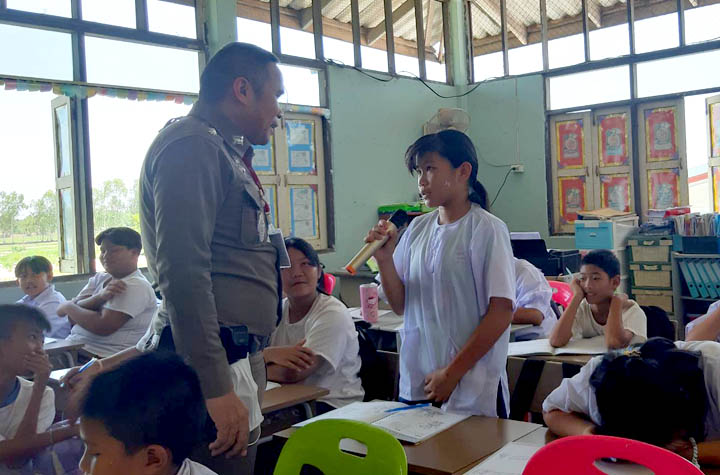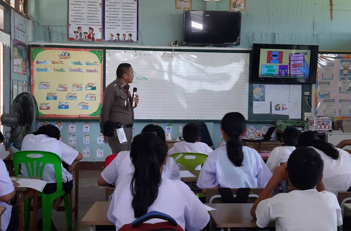 โครงการการศึกษาเพื่อต่อต้านการใช้ยาเสพติดในเด็กนักเรียน (D.A.R.E.) 2 มิถุนายน 2023 โดย admin / ข่าวประชาสัมพันธ์ รายงานการเข้าสอนโครงการ D.A.R.E. วันนี้ (2 มิ.ย.2566) เวลา 10.30-11.30 น. โดยการอำนวยการของพ.ต.อ.ประเสริฐ ธรรมชัย ผกก.สภ.ท่าบ่อ พ.ต.ท.อรรถวิทย์ กันยา รอง ผกก.ป.สภ.ท่าบ่อมอบหมายให้ พ.ต.ท.ทวีศักดิ์ จันทร์เรือง สว.อก.สภ.ท่าบ่อ/ครูตำรวจแดร์ เข้าสอนตามโครงการการศึกษาเพื่อต่อต้านการใช้ยาเสพติดในเด็กนักเรียน (โครงการ D.A.R.E.ประเทศไทย) แก่นักเรียนชั้นประถมศึกษาปีที่ 5,6 จำนวน 27 คน ในบทที่ 1 เรื่อง วัตถุประสงค์และภาพรวมของหลักสูตร D.A.R.E. พร้อมทั้งบรรยายให้ความรู้ป้องกันการล่วงละเมิดทางเพศต่อเด็กในโลกออนไลน์ (D.A.R.E.2C.A.R.E.) ที่โรงเรียนบ้านโพนพระ ต.โคกคอน อ.ท่าบ่อ จว.หนองคาย โดยได้รับความร่วมมือจากผู้บริหาร คุณครู และนักเรียนให้ความสนใจเป็นอย่างดี