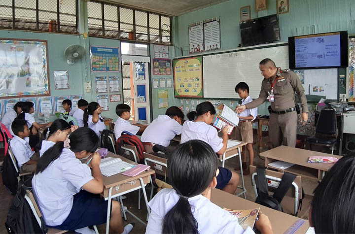 โครงการการศึกษาเพื่อต่อต้านการใช้ยาเสพติดในเด็กนักเรียน( D.A.R.E.) 16 มิถุนายน 2023 โดย admin / ข่าวประชาสัมพันธ์ วันที่ 15 มิ.ย.2566 เวลา 09.00-11.30 น. โดยการอำนวยการของ พ.ต.อ.ประเสริฐ ธรรมชัย ผกก.สภ.ท่าบ่อ พ.ต.ท.อรรถวิทย์ กันยา รอง ผกก.ป.สภ.ท่าบ่อ มอบหมายให้ พ.ต.ท.ทวีศักดิ์ จันทร์เรือง สว.อก.สภ.ท่าบ่อ/ครูตำรวจแดร์ เข้าสอนตามโครงการการศึกษาเพื่อต่อต้านการใช้ยาเสพติดในเด็กนักเรียน (โครงการ D.A.R.E.ประเทศไทย) แก่นักเรียนชั้นประถมศึกษาปีที่ 5,6 จำนวน 27 คน ในบทที่ 3 เรื่อง ม่วนควัน พร้อมทั้งบรรยายให้ความรู้ป้องกันการล่วงละเมิดทางเพศต่อเด็กในโลกออนไลน์ (D.A.R.E.2 C.A.R.E.) ที่โรงเรียนบ้านโพนพระ ต.โคกคอน อ.ท่าบ่อ จว.หนองคาย โดยได้รับความร่วมมือจากผู้บริหาร คุณครู และนักเรียนให้ความสนใจเป็นอย่างดี โดยในวันนี้ช่วงเช้า ก่อนเข้าสอน ได้รับเกียรติจากคณะครู ให้ร่วมกิจกรรมไหว้ครูของเด็กนักเรียน และได้พบปะ ทักทาย คณะครู/นักเรียน พร้อมแจกแผ่นพับประชาสัมพันธ์ 18 กลโกงของมิจฉาชีพ อาชญากรรมออนไลน์