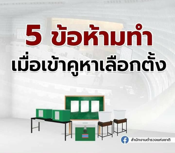 5 ข้อ “ห้ามทำ” เมื่อเข้าคูหาเลือกตั้ง 6 พฤษภาคม 2023 โดย admin / ข่าวประชาสัมพันธ์ ด้วยความปรารถนาดี จาก สภ.ท่าบ่อ จ.หนองคาย